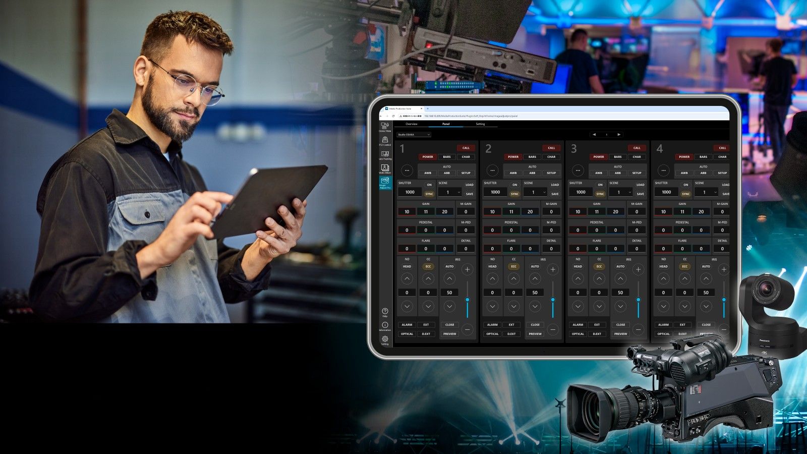 V televizních studiích a eventových prostorech může být počet dostupných ovládacích stanic omezený a správa různých modelů kamer je časově náročná. Image Adjust Pro je softwarový ekvivalent vzdáleného ovládacího panelu, kompatibilní se studiovými a PTZ kamerami Panasonic.